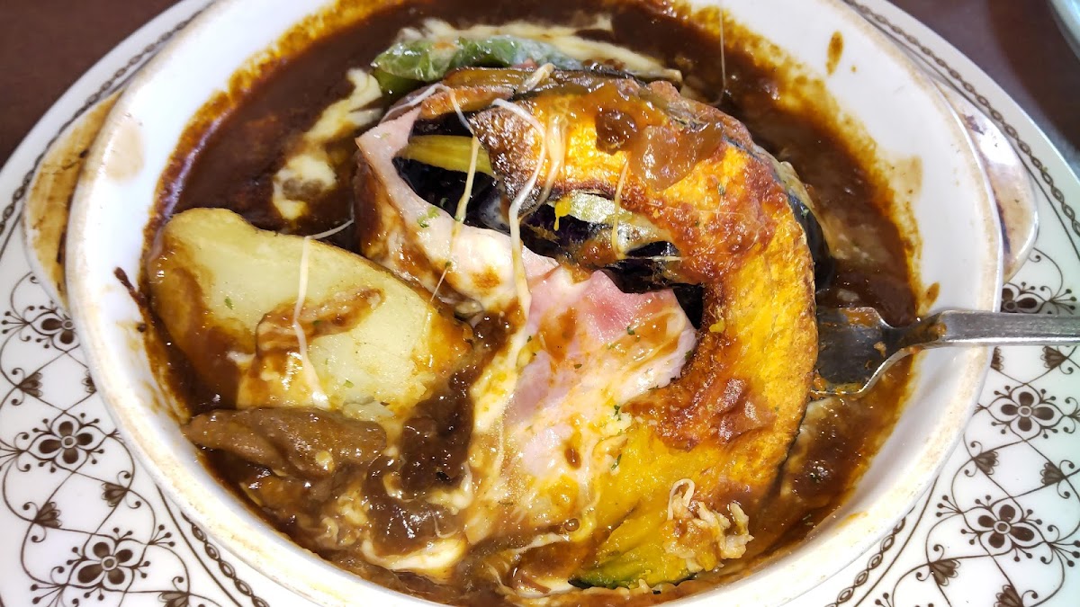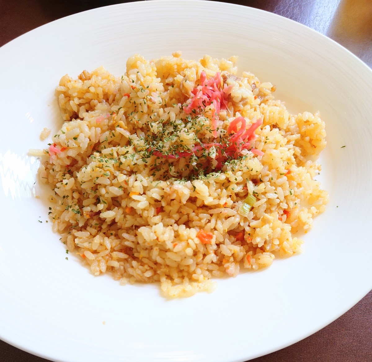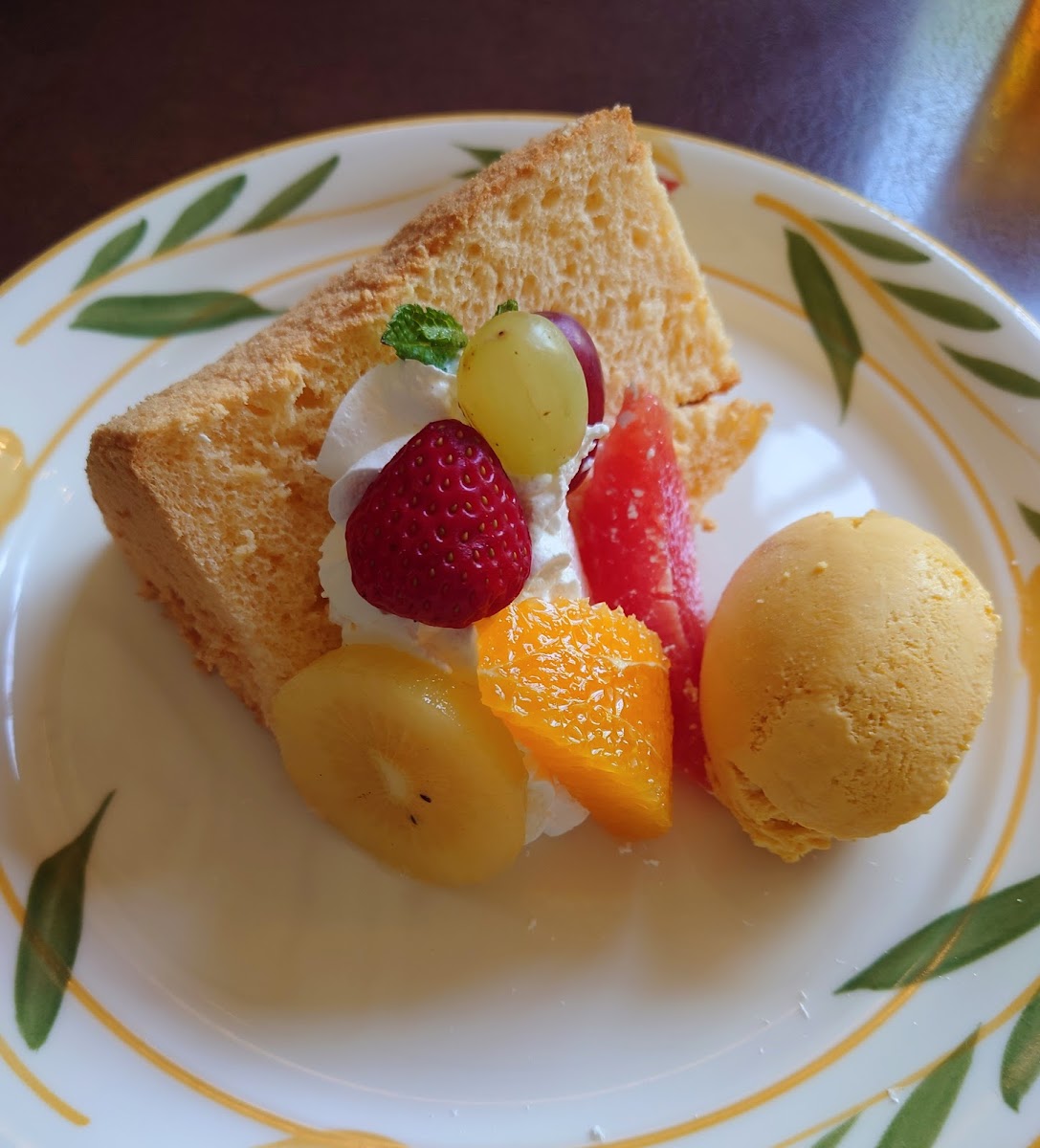 The menu blends classic Japanese cafe fare with a bit more depth than you might expect. The モーニングaセット (morning set) provides a light and affordable way to start the day, often chosen by regulars appreciating a simple breakfast with coffee. For lunch, hearty options like the チーズハンバーグ (cheese hamburger steak) paired with fried eggplant and bacon stand out—notably, the demi-glace sauce has a careful richness that balances deeper flavors without feeling heavy. The rice dishes, including various types ofチャーハン (fried rice) and ピラフ (pilaf), are well-portionized for those with a healthy appetite, and the salad with housemade dressing adds a fresh, homemade touch that customers often praise. The light and fluffy フルーツシフォンケーキ (fruit chiffon cake) is a fitting choice for a gentle afternoon treat alongside a strong, generous cup of coffee.